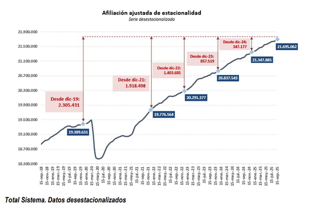 Total de afiliados en términos desestacionalizados |